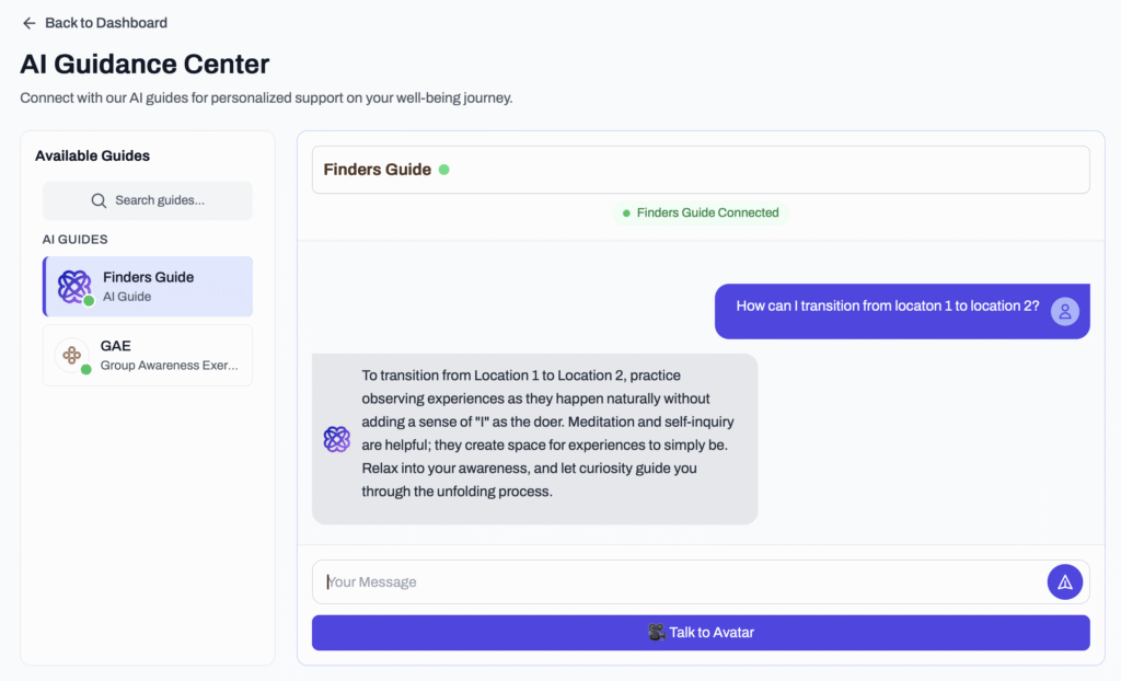 Our AI Finders Guide was trained on the most comprehensive database of Fundamental Wellbeing research in the world — peer-reviewed studies, clinical data, insights from thousands of participants. It knows this territory inside and out.