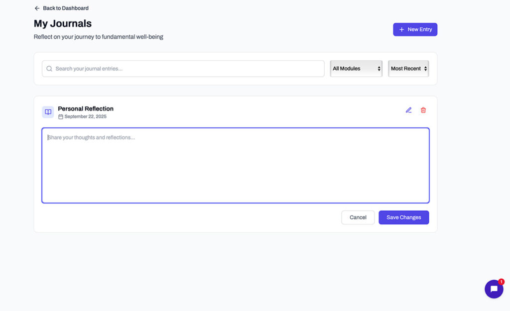 A personal journal to capture insights, notice patterns, and watch how you’re evolving over time.